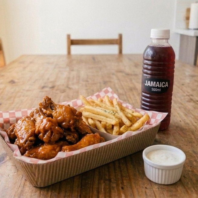 Alitas 250 Gr + 100 Gr de Papas.*1 + Agua de Jamaica 500 ML.*1