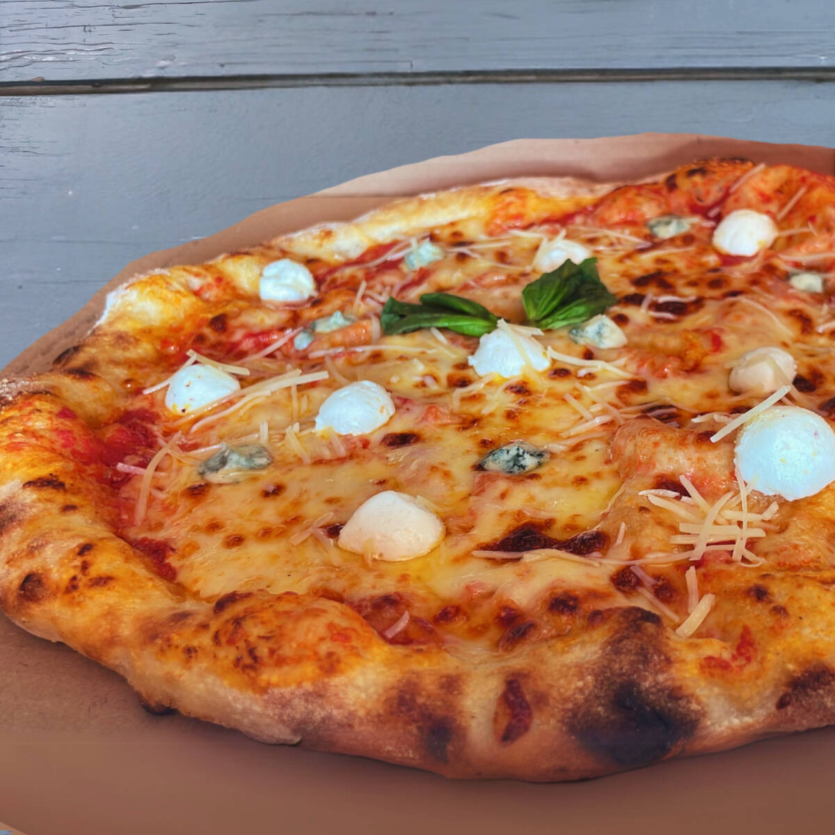 La mezcla perfecta de quesos al puro estilo italiano con mozzarella, blue cheese, queso de cabra y parmesano