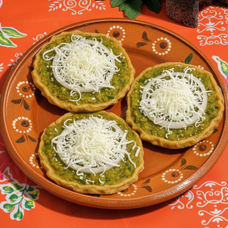 Hecha con masa calientita recién salida del comal, esta picadita lleva una salsa verde. Encima, le puedes poner papita o chicharrón, y va coronada con queso rallado.
