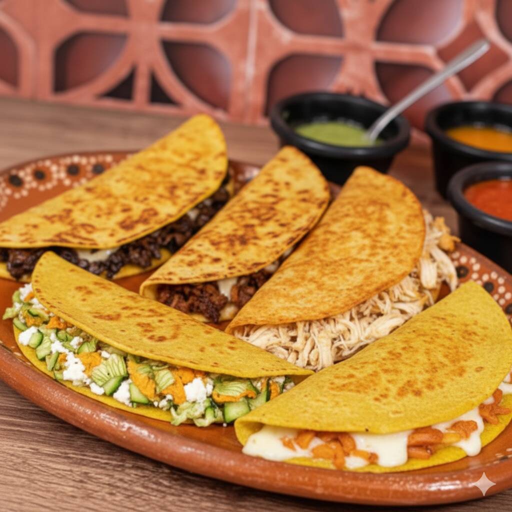Tortilla dorada al comal, con queso fundido y chorizo bien frito, con ese sabor picosito que se roba el antojo. Una combinación clásica que nunca falla.