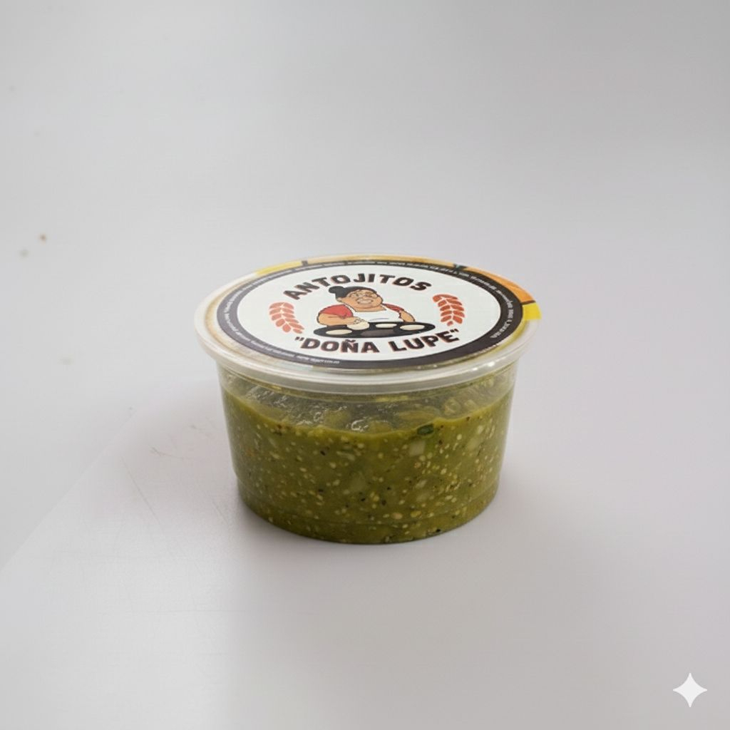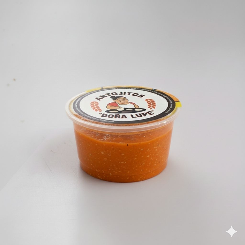 Chile serrano frito, con tomate verde tatemado, cebolla y ajo. Picosa, intensa y bien sabrosa.