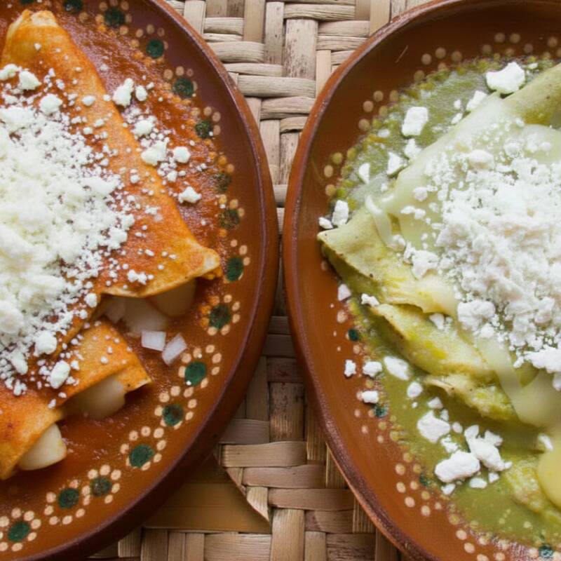 5 Tortillas bañadas en salsa verde o roja, bien caldositas y llenas de sabor. Acompañadas con crema, queso y cebolla picada. Preparadas al momento, estilo casero, perfectas para un antojo bien mexicano.