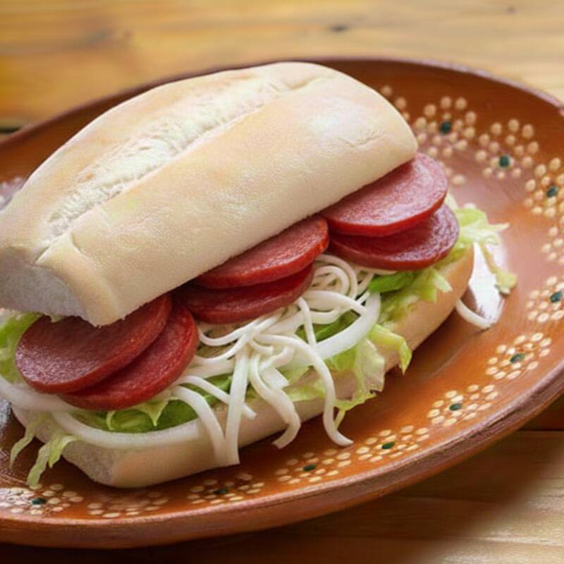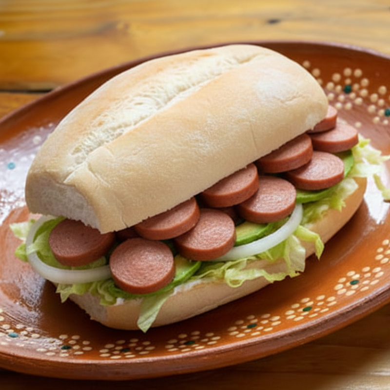 Bolillo recién calentado con frijoles refritos, lechuga crujiente, jitomate fresco, mayonesa y salchicha dorada mezclada con queso fundido. Sencilla, llenadora y con ese sabor casero que se antoja a cualquier hora.