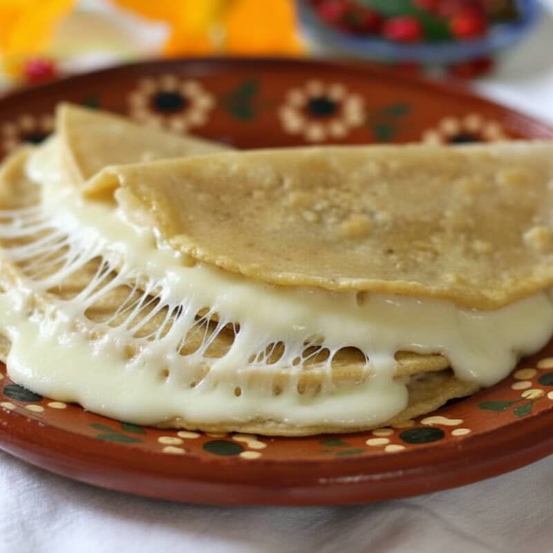 Tortilla calientita al comal, rellena con queso de hebra que se derrite suavecito. Sencilla, sin grasa y con ese sabor casero que no falla.