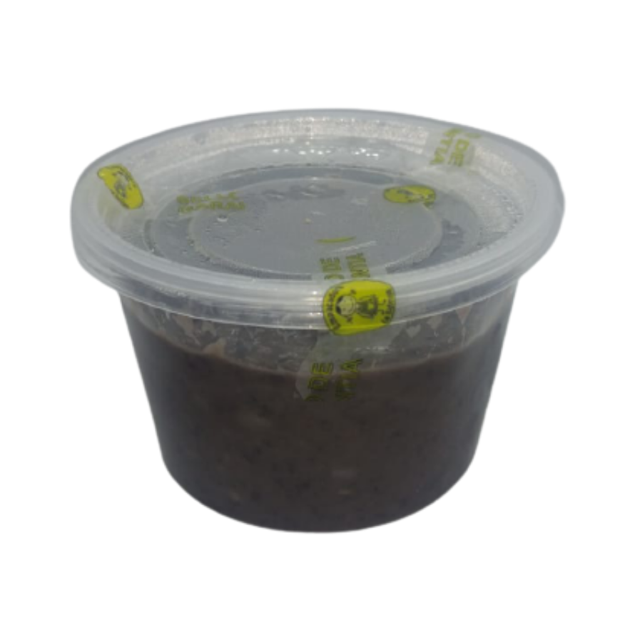 Frijoles refritos con hoja de aguacate, cremosos, bien sazonados y con ese toque aromático que abre el apetito. Medio kilo de sabor casero, perfectos para acompañar cualquier antojito.