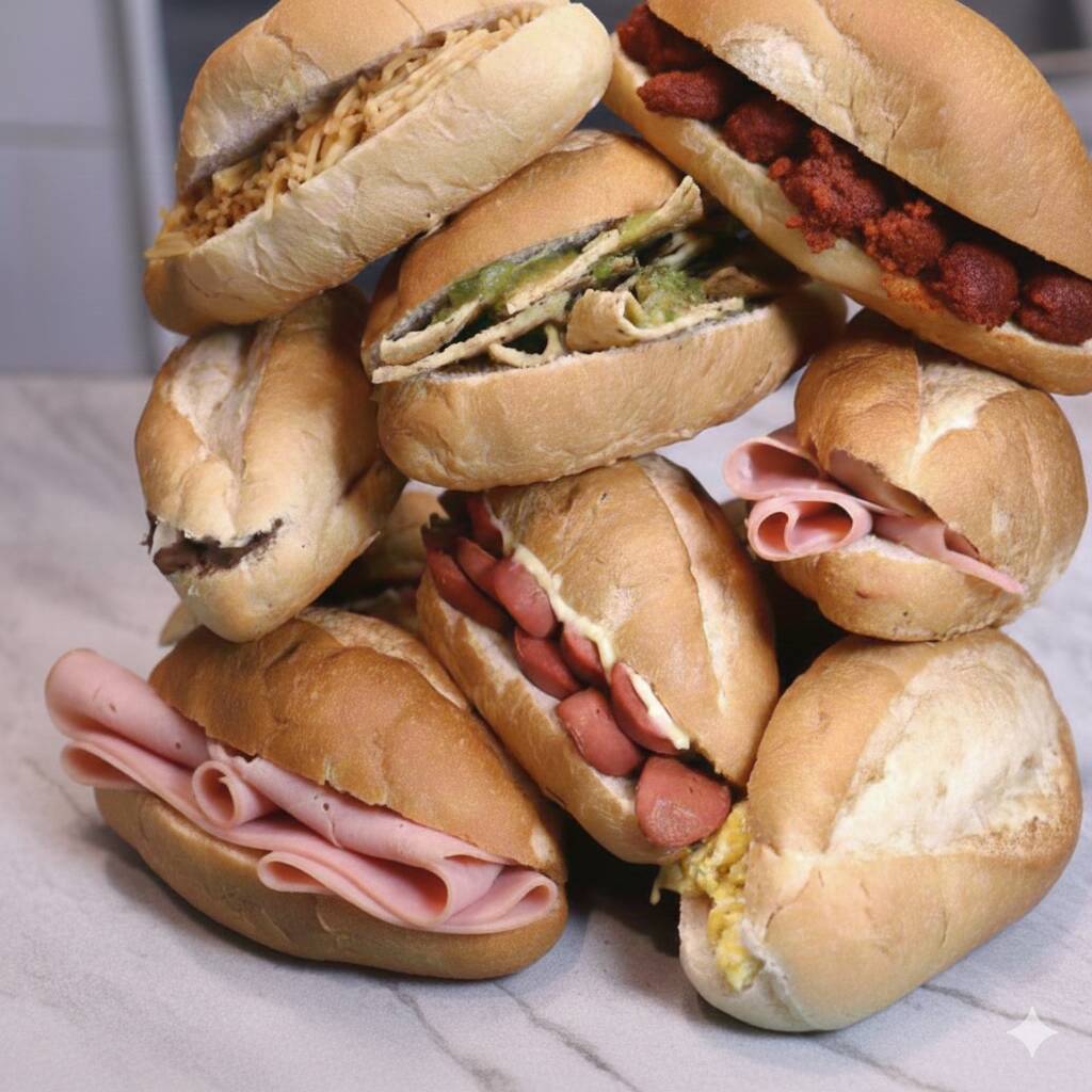 Torta de Jamón*1 + Torta de Pollo*1 + Torta de Salchicha*1 + Torta de Queso de Hebra*1 + Torta de Chorizo*1