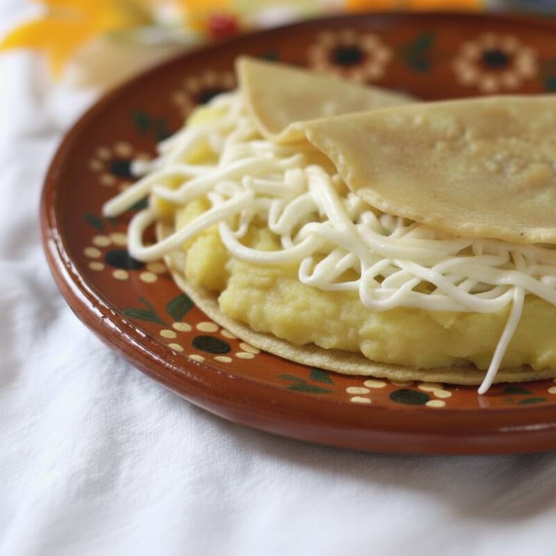 Tortilla calientita rellena de queso derretido y papa cocida, suave y bien sazonada. Un sabor tradicional que te hace sentir en casa en cada bocado.
