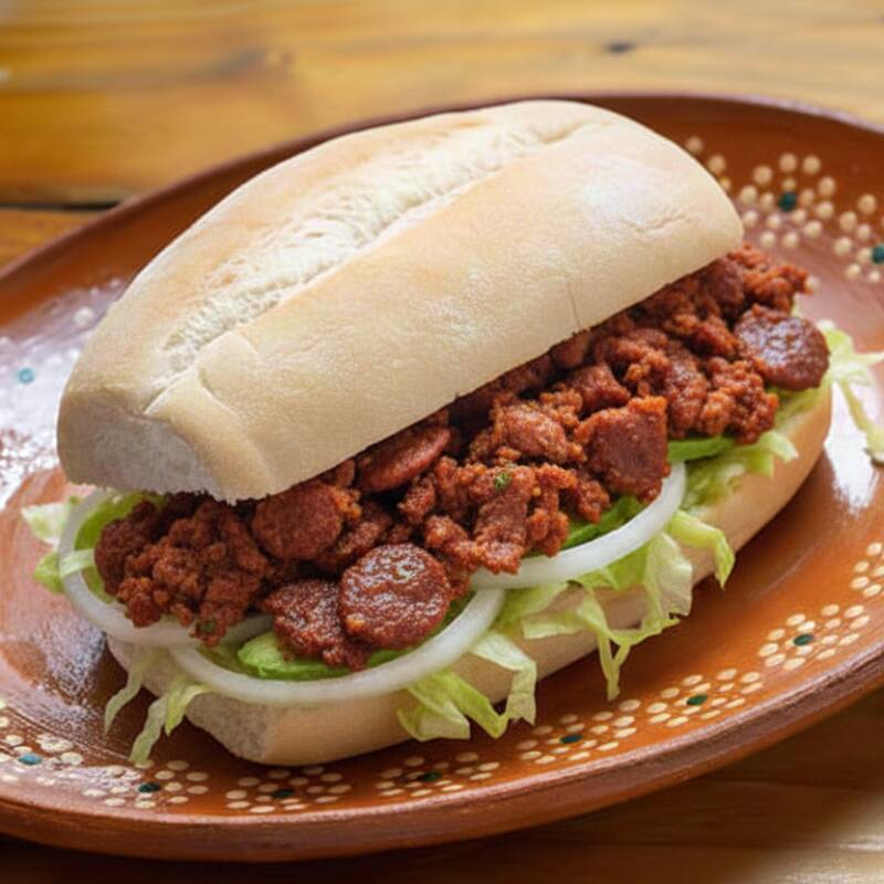 Bolillo calientito con una base de frijoles refritos, lechuga fresca, rodajas de jitomate, mayonesa y nuestro choriqueso casero: chorizo doradito con queso derretido. Una combinación cremosa, crujiente y llena de sabor.