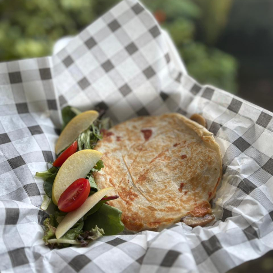 Tortilla de harina rellena de queso derretido y toque especial de la casa. Sencilla, deliciosa y siempre antojadiza.