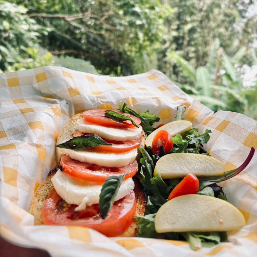 Pan tostado artesanal con tomate de bola fresco, mozzarella suave y un toque de albahaca. Un clásico italiano en versión ligera.