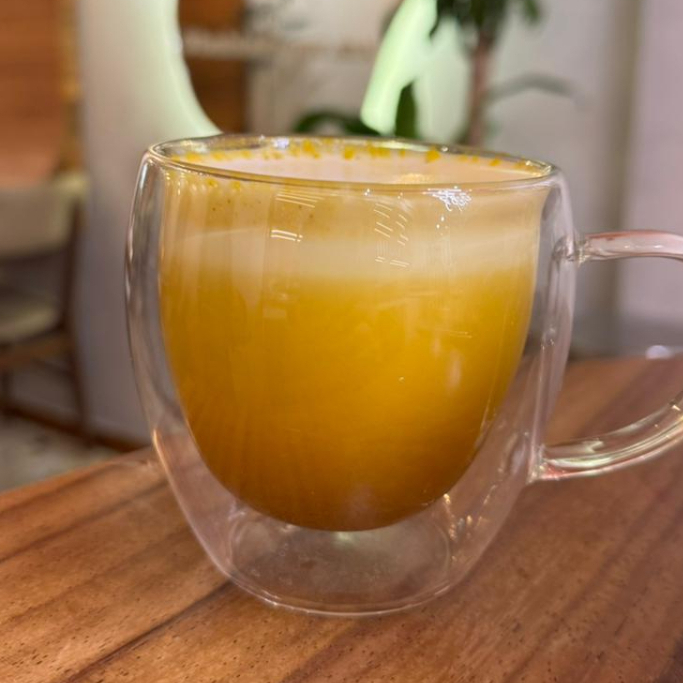 Cúrcuma, anís estrella, gengibre con una suave y cremosa leche.