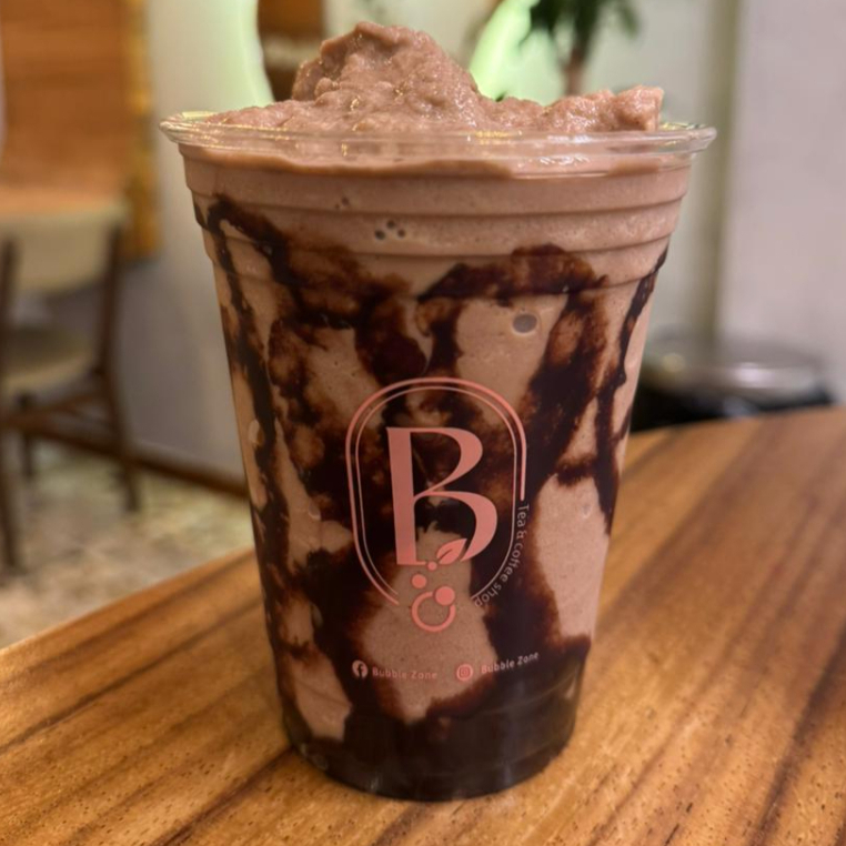 Frappé sabor chocolate con café y tapioca negra.