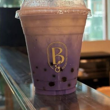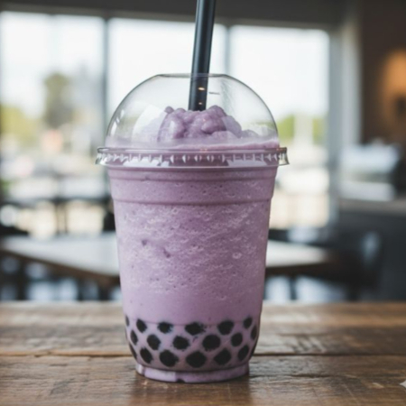 Sabor taro a base de leche y tapioca negra.