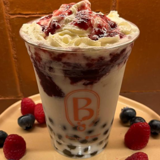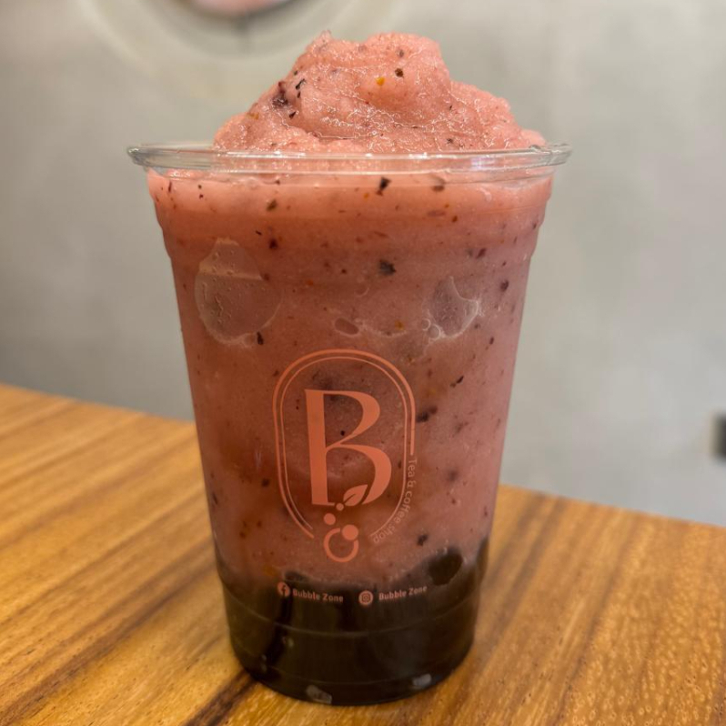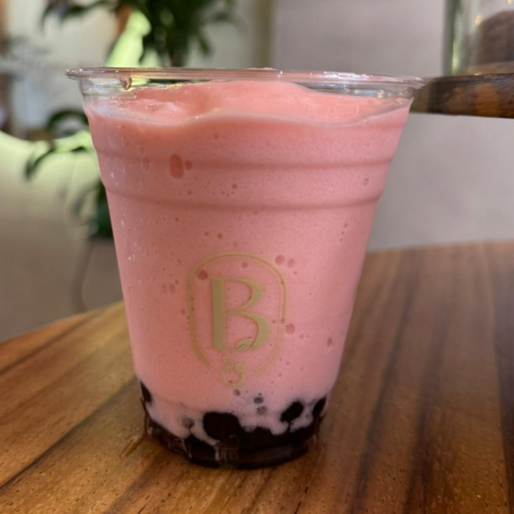 Tisana frappé sabor a frutos rojos y tapioca negra.