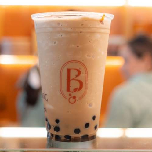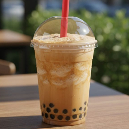 Frappé té negro con especias a base de leche y tapioca negra.