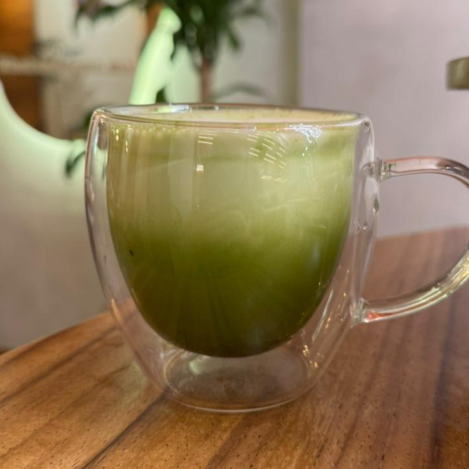 Té verde pulverizado con una suave y cremosa leche.