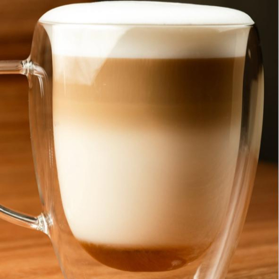Espresso intenso equilibrado con una suave y cremosa leche caliente.
