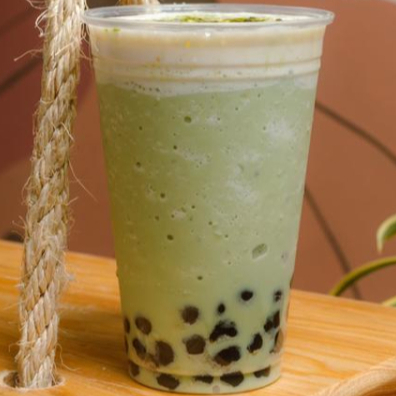 Té verde pulverizado a base de leche y tapioca negra.