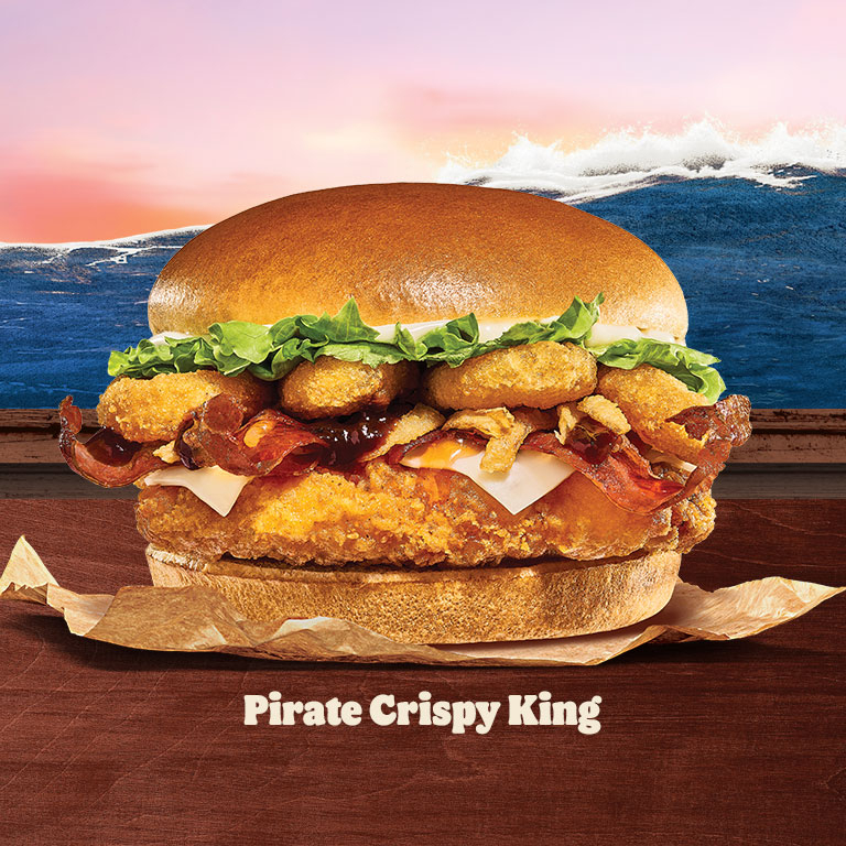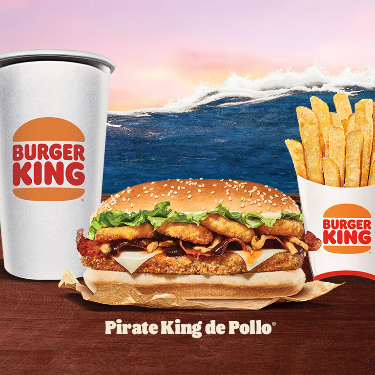 Libera tu lado Pirata con nuestra icónica carne a la parrilla ahora con salsa BBQ y un toque de salsa de naranja, aros de cebolla, cebolla crispy, tocino y queso suizo, todo sobre pan esponjoso de ajonjolí. Incluye papas chicas y refresco de 400 ml.