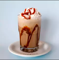 Bebida 355 ml: Frappé de café elaborado a base de extracto de café con un toque de cajeta con crema batida.