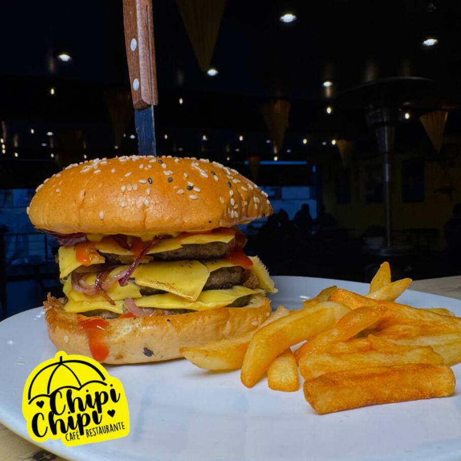 Triple carne SIRLOIN, triple queso americano y cebolla caramelizada.