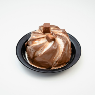 Pan doble chocolate, humectado en nuestro jarabe de chocolate hersheys y relleno de crema de chocolate, cubierto con nuestro betún Carlos V; decorado con un original diseño de ganache, chocolate y cereza.