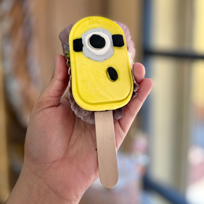 Delicioso brownie de chocolate en forma de paleta, decorado con fondant en tonos festivos