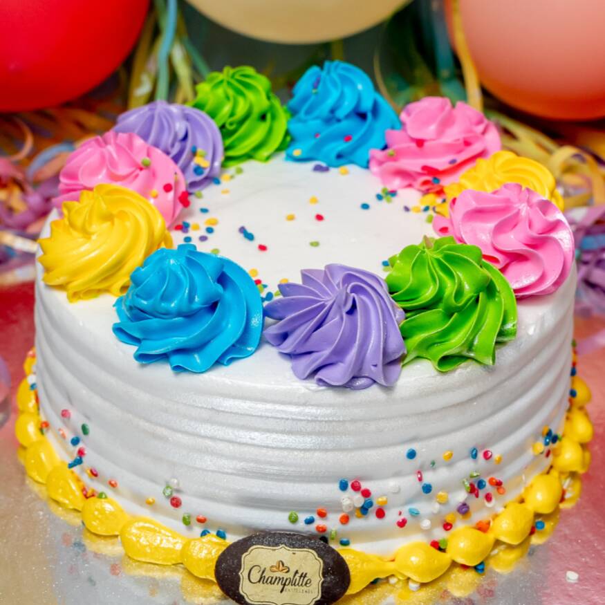 Mantecada con cobertura de fondant, decorada con detalles elegantes y coloridos ideales
