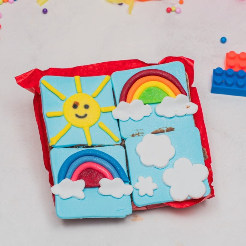 Deliciosos brownies de chocolate, decorados con fondant y perfectos para cualquier ocasión especial. Un detalle dulce que siempre sorprende