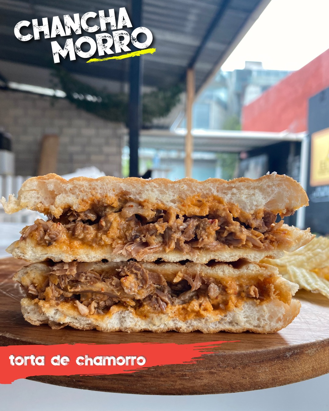 Chamorro preparado con una mezcla especial de chiles y especias de chanchamorro, horneado por más de tres horas. se acompaña de guarnición ya sea arroz o espagueti (250 g c/u) y tortillas (8) o telera (2). se incluye salsa y cebollitas encurtidas.