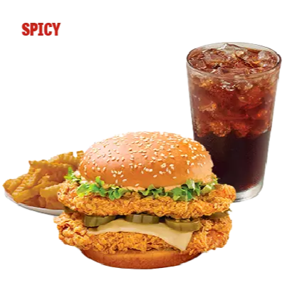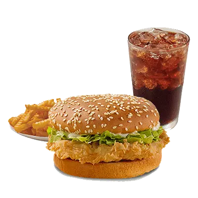 Hamburguesa clasica con mayonesa a elegir (original o spicy), 1 papas chicas (2.5oz) y 1 refresco (400ml)