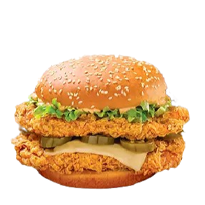 Hamburguesa con doble medallón de pollo, chile jalapeño en rodajas, lechuga, queso amarillo y mayonesa a elegir (original o spicy)