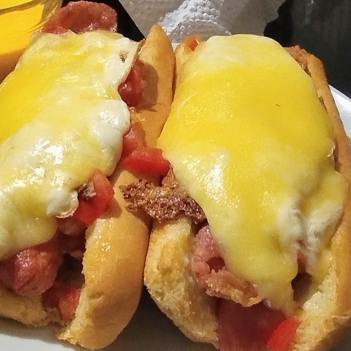 Bolillo, salchicha de pavo, tocino, pepperoni, mix de queso, tomate, cebolla, cátsup, mostaza.