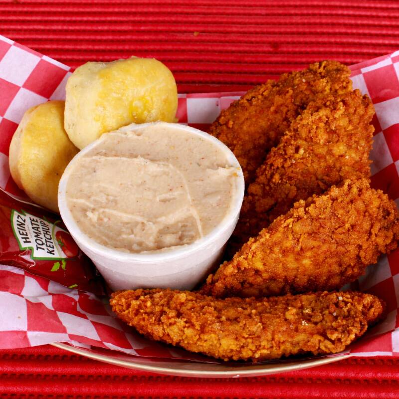 PURE DE PAPA CHICO*1 + TIRA CRUJIENTE DE PECHUGA DE POLLO*2 + MINI BISQUETS 2 PIEZAS*1 + ADEREAZO RANCH*1