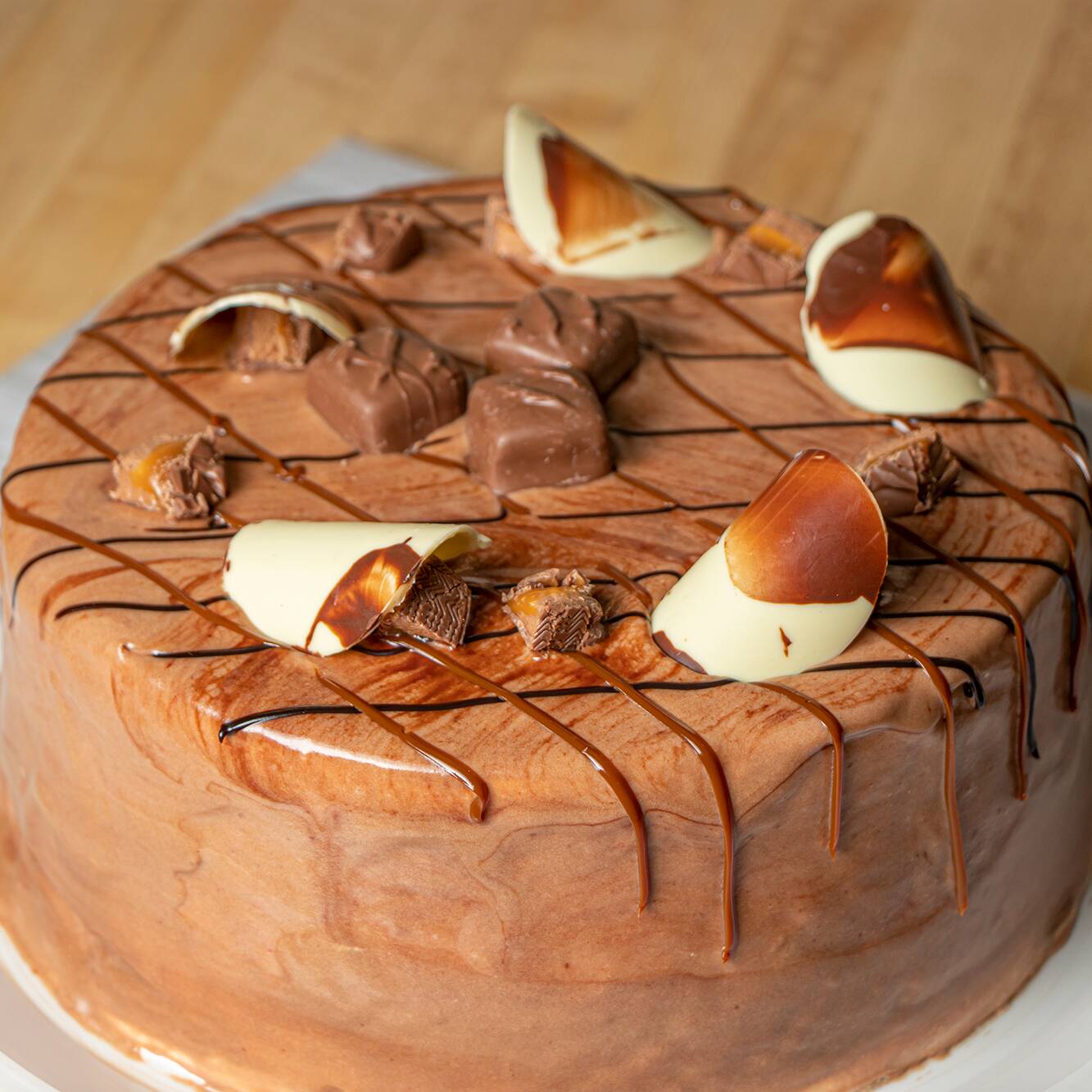 Pan De Chocolate Relleno De Crema De Queso Con Milky Way. 3 Leches De Chocolate. Decorado De Chantilly Chocolate Con Ganache, Chocolates Milky Way Y Garabatos De Dulce De Leche.