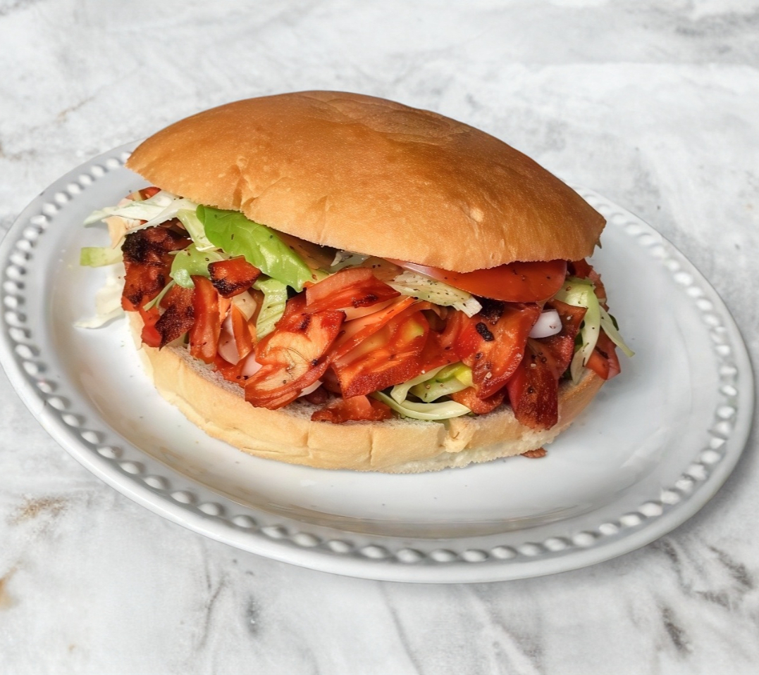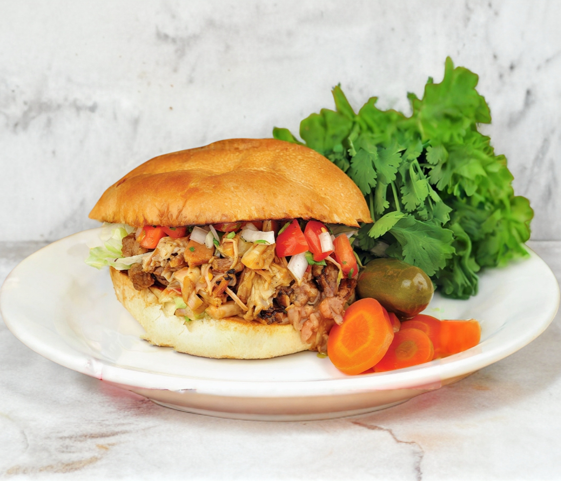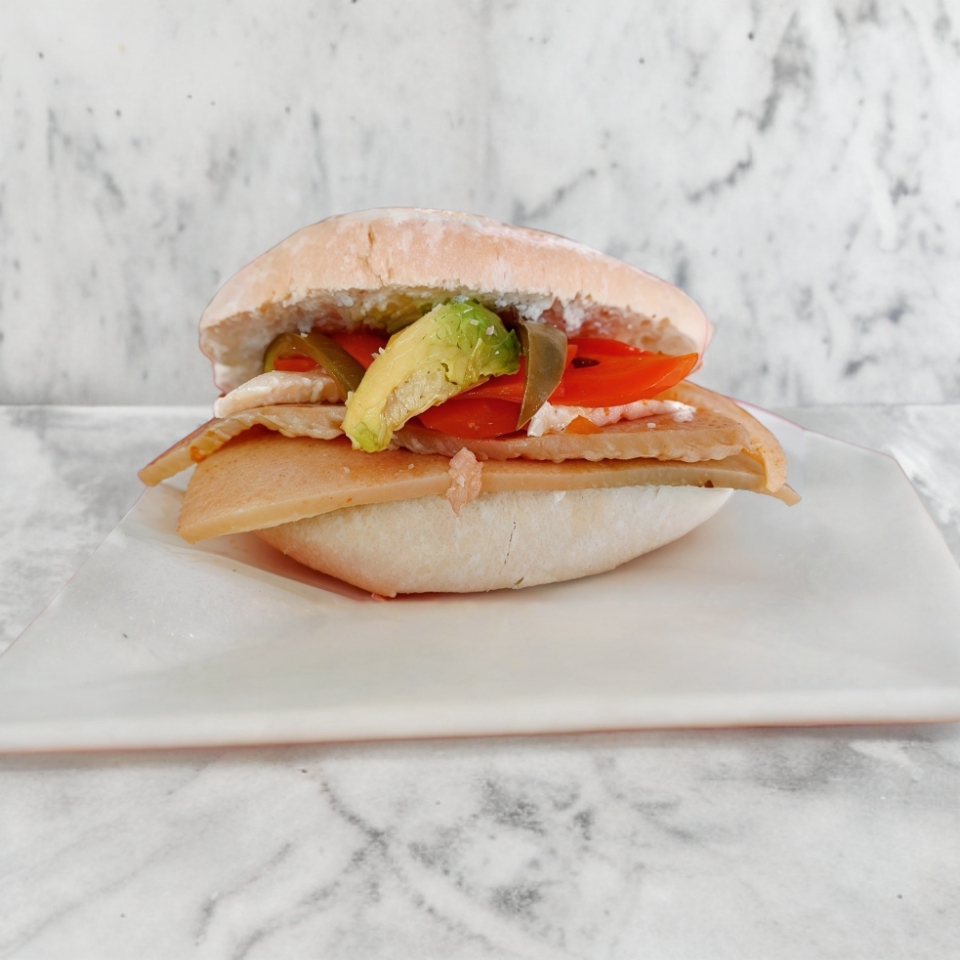 1 Torta Personal // Pollo, queso de hebra, tomate, cebolla, frijol, mayonesa y aguacate.