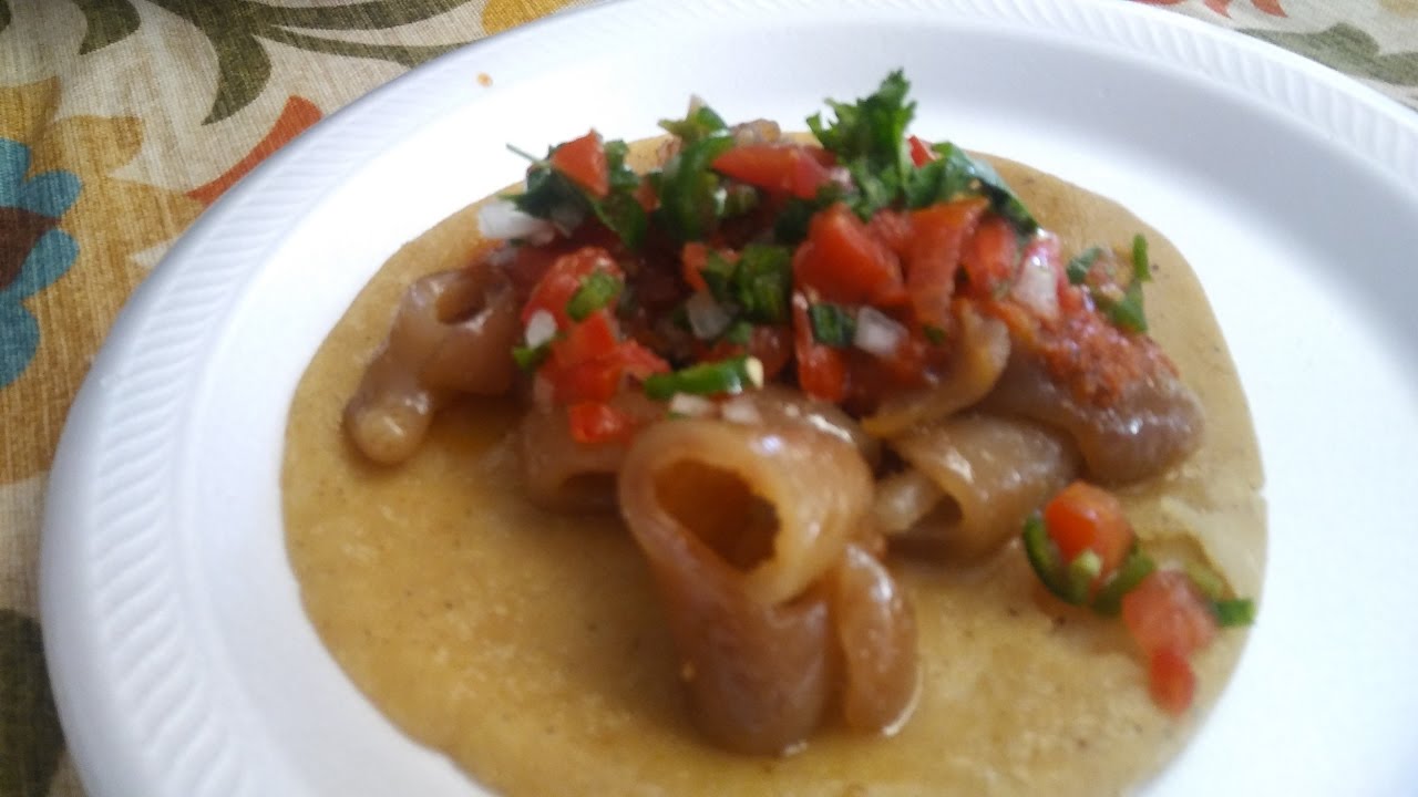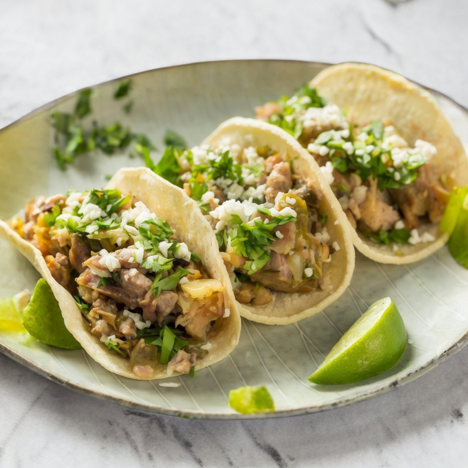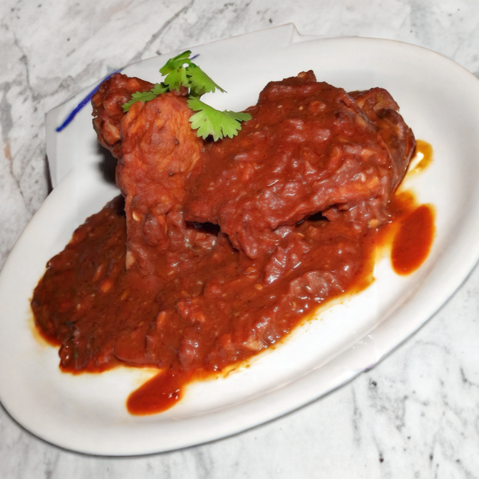 1 Tortilla de maíz, carne de cerdo bañada en salsa de chile seco.
