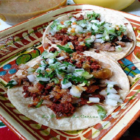 orden de (arrachera y Longaniza) tortilla de maiz y salsas
