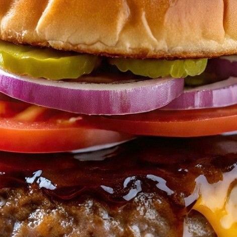 Carne de res de 200 gr. Ahumada y asada al carbón, pepinillos en salmuera, queso americano, cebolla morada, pan parrillero con ajonjolí, lechuga, jitomate, acompañada de chiles habaneros con cebolla caramelizada, mostaza y catsup.