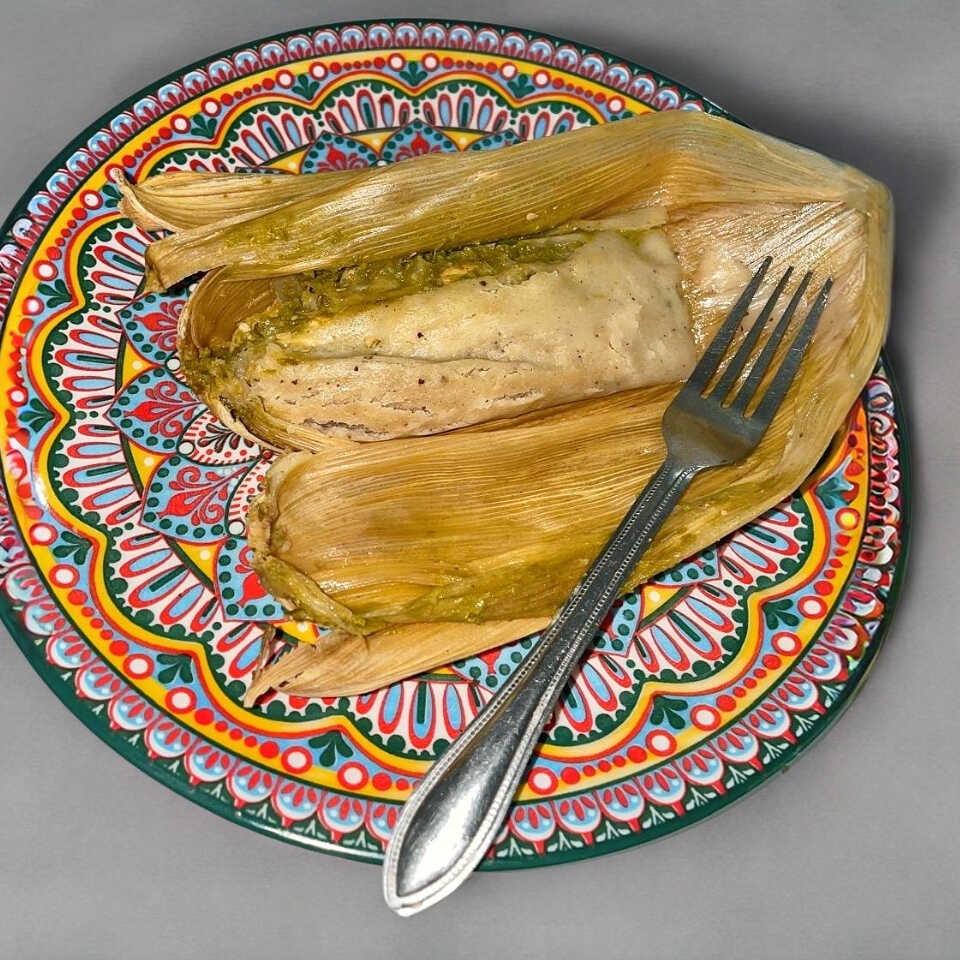 Tamal de rajas de chile verde con queso en hoja de maiz