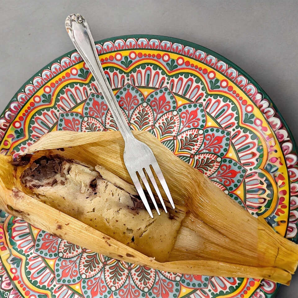 Tamal de masa con con frijol casero, envuelto en hoja de maíz.