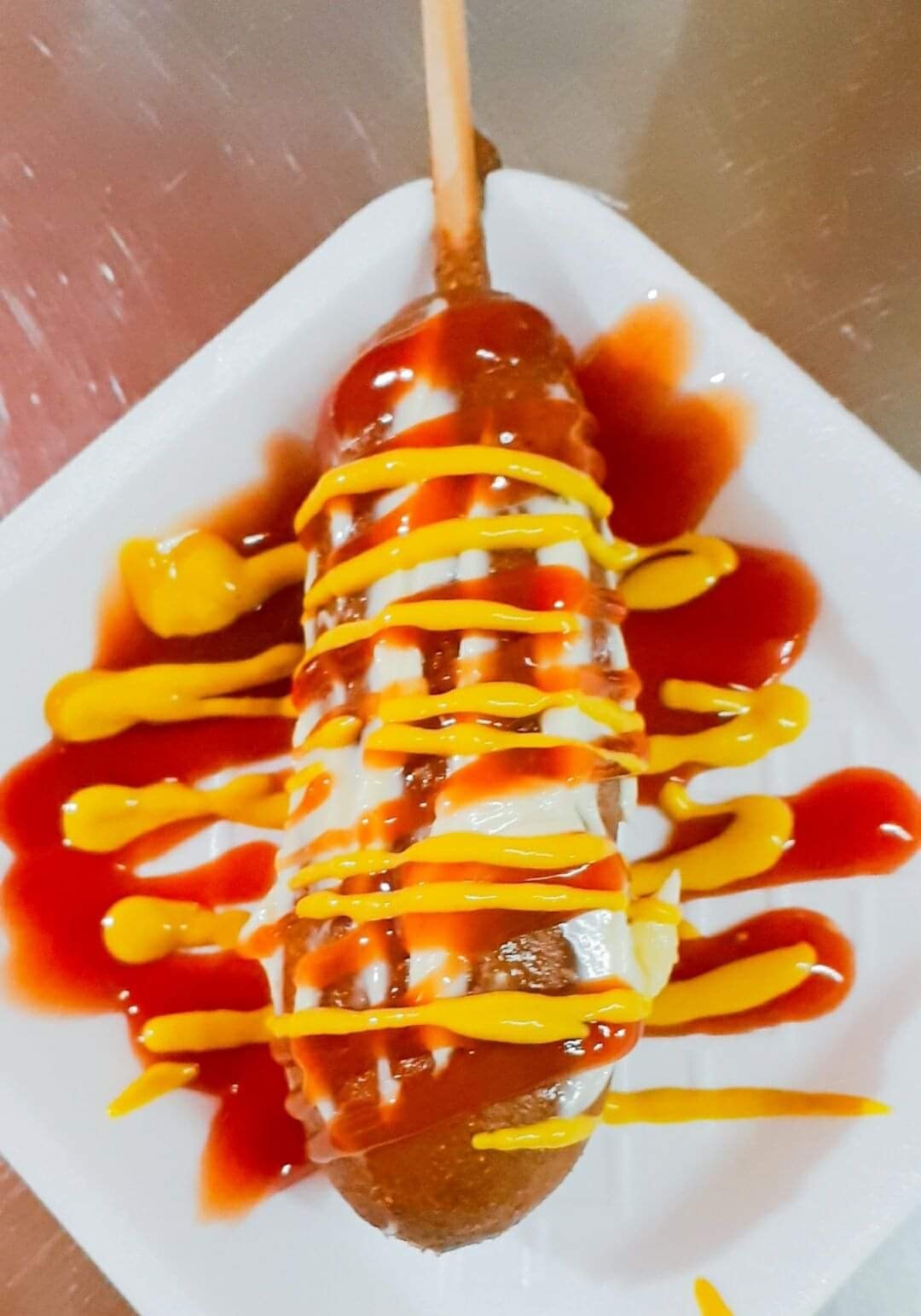 Queso amarillo, tocino, piña, queso hebra y jamón.