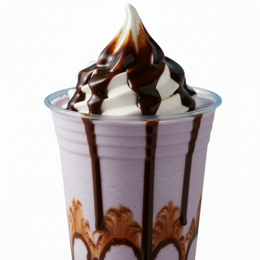 Malteada cremosa y refrescante en sabores como taro, cookies and cream, chocolate, capuchino, matcha azul, red velvet, moka y chocolate blanco, (vaso de 10 oz).