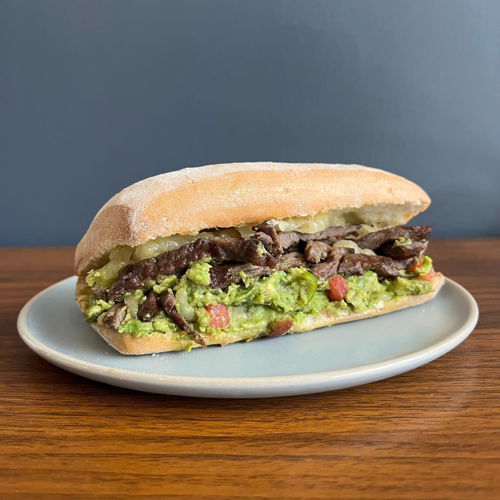 Arrachera, lechuga, aguacate, tomate, cebolla y chile serrano