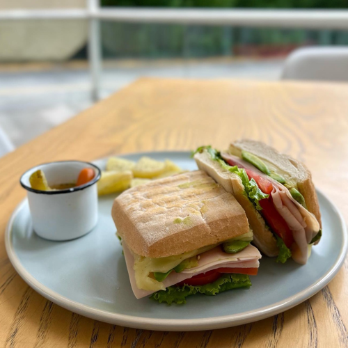 Jamón de pavo, jitomate, queso cheddar, lechuga y aguacate.