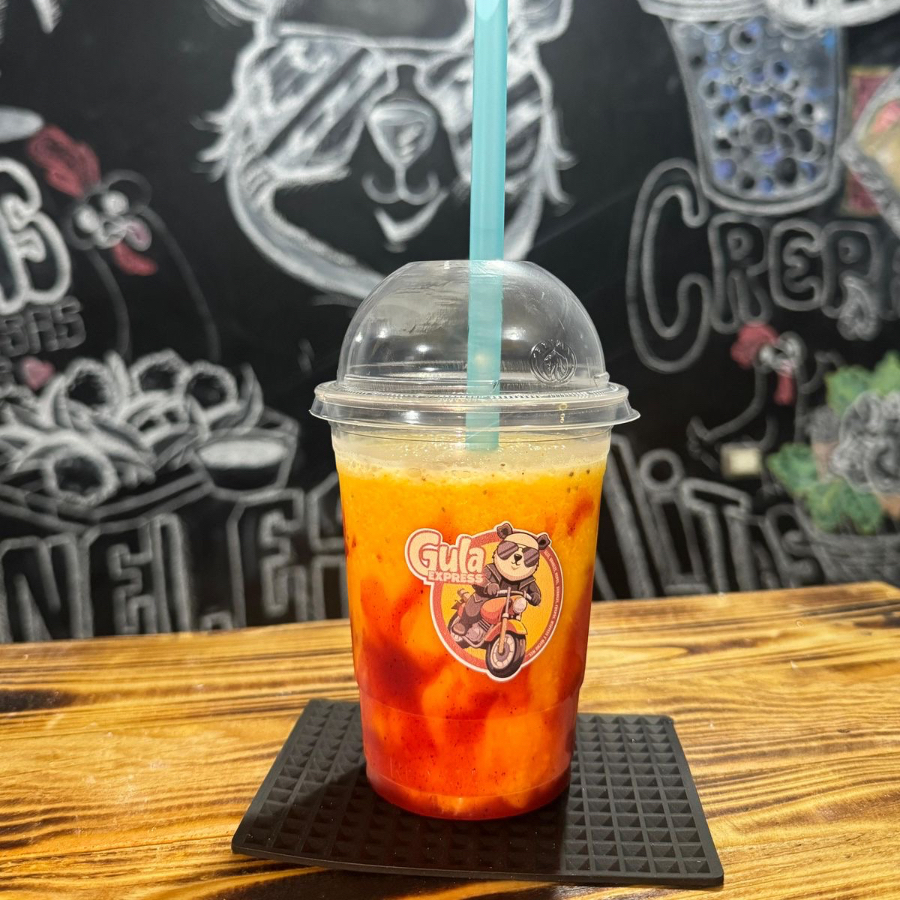 Bubble tea sabor frutos rojos con leche o agua con tapioca