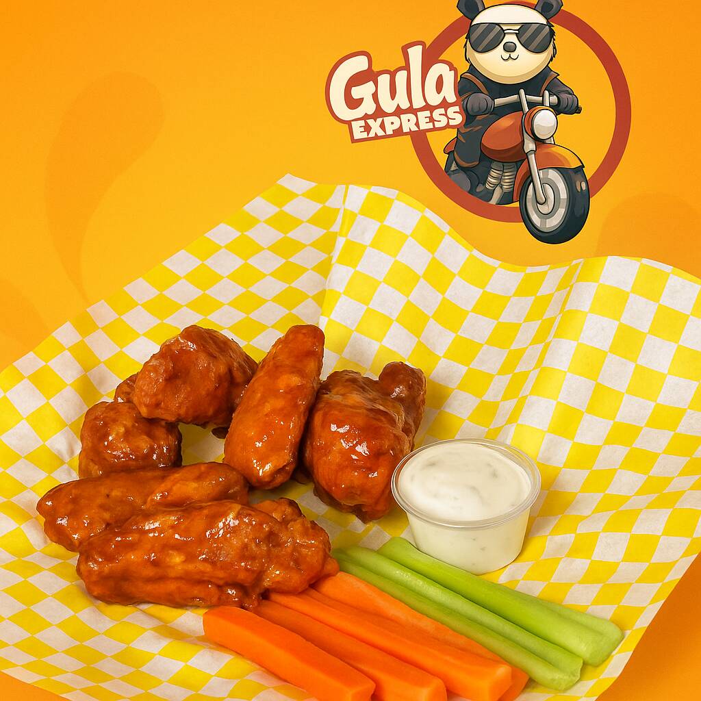 16 pz de Alitas, Salsa a elegir con orden de papas y vegetales