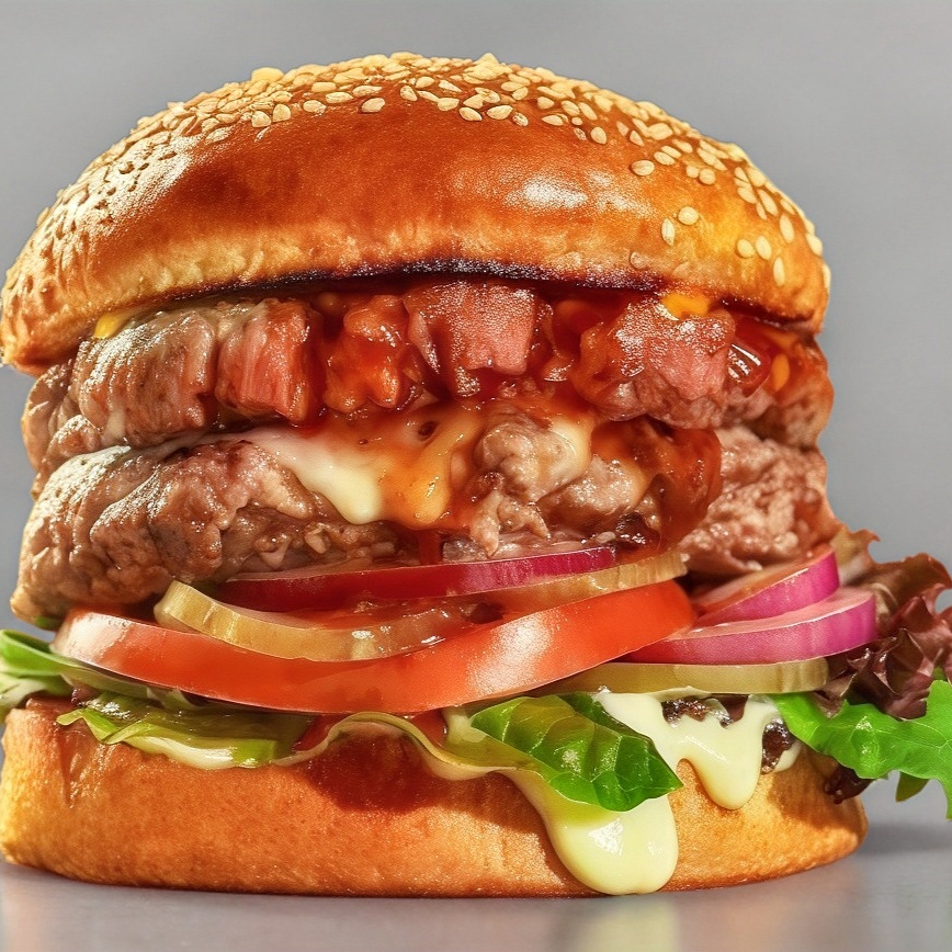 Pan,carne(120g) doble tocino,queso manchego,jitomate,cebolla,lechuga y mayonesa+papasfrancesas