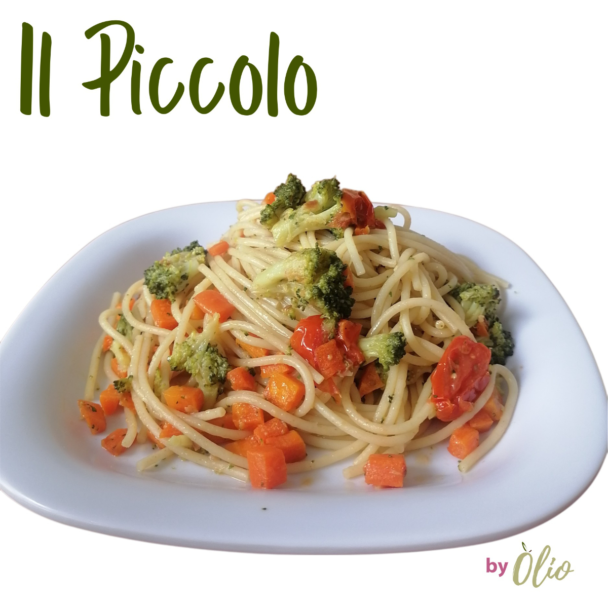 Pasta salteada en aceite de oliva y ajo con tomates cherry, zanahoria y brócoli (270gr).