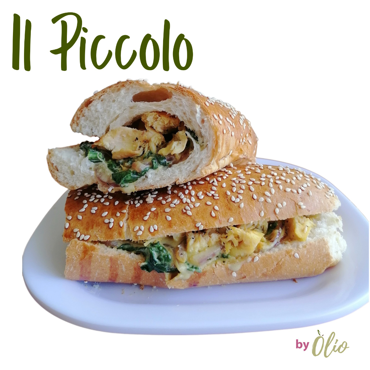 Baguette de 30cm preparado con pechuga de pollo a la plancha, espinacas, cebolla morada y queso gouda.